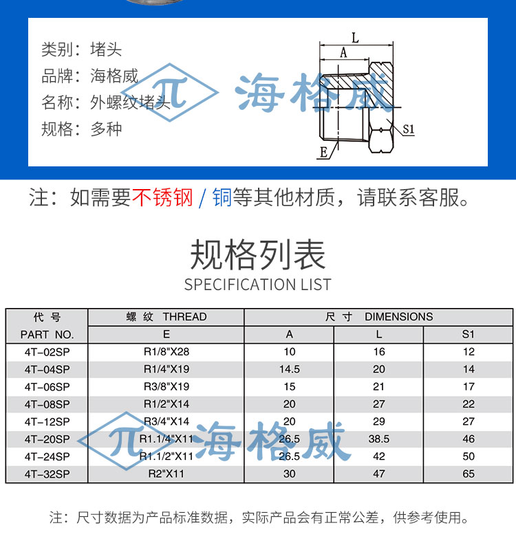 » 外螺纹堵头-4T-SP
