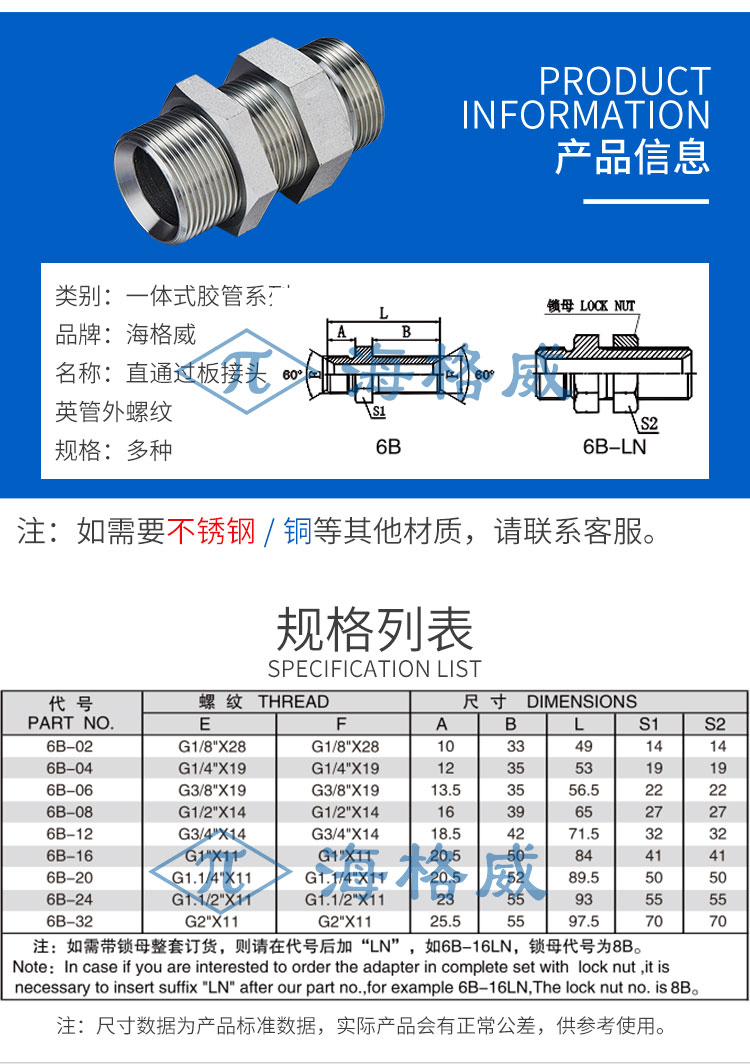 直通过板接头-6B