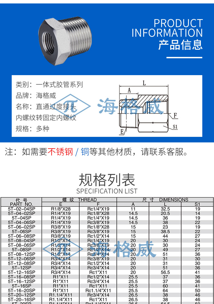 » 直通过度接头外螺纹转固定内螺纹-5T-SP