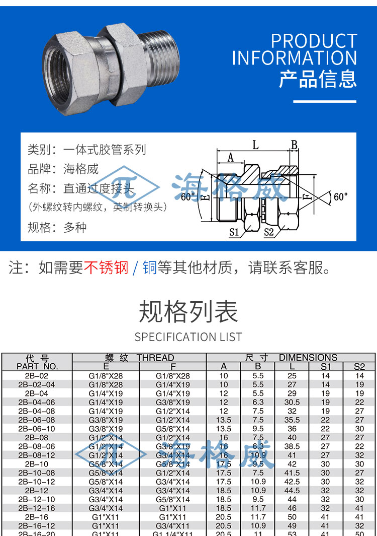 直通过度接头外螺纹转内螺纹(英制转换头)-2B
