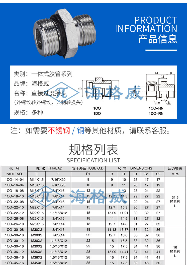 直接过度接头外螺纹转外螺纹(公制转换头)-1CO
