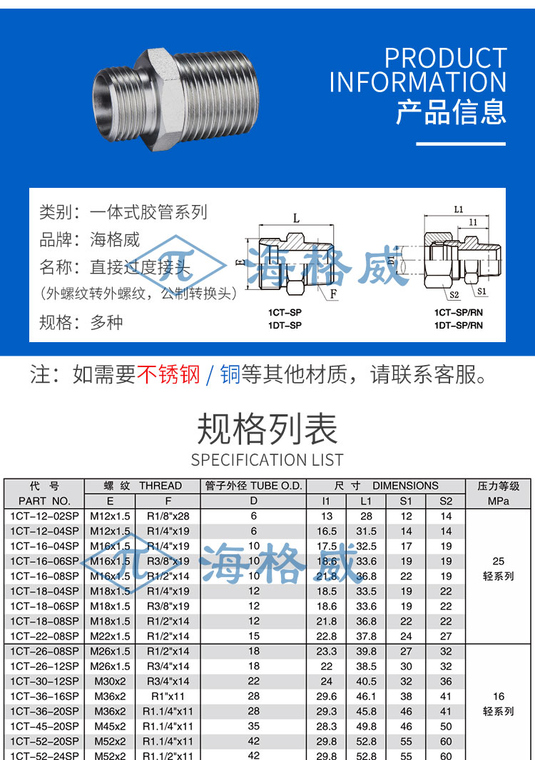 直接过度接头外螺纹转外螺纹(公制转换头)-1CT-SP