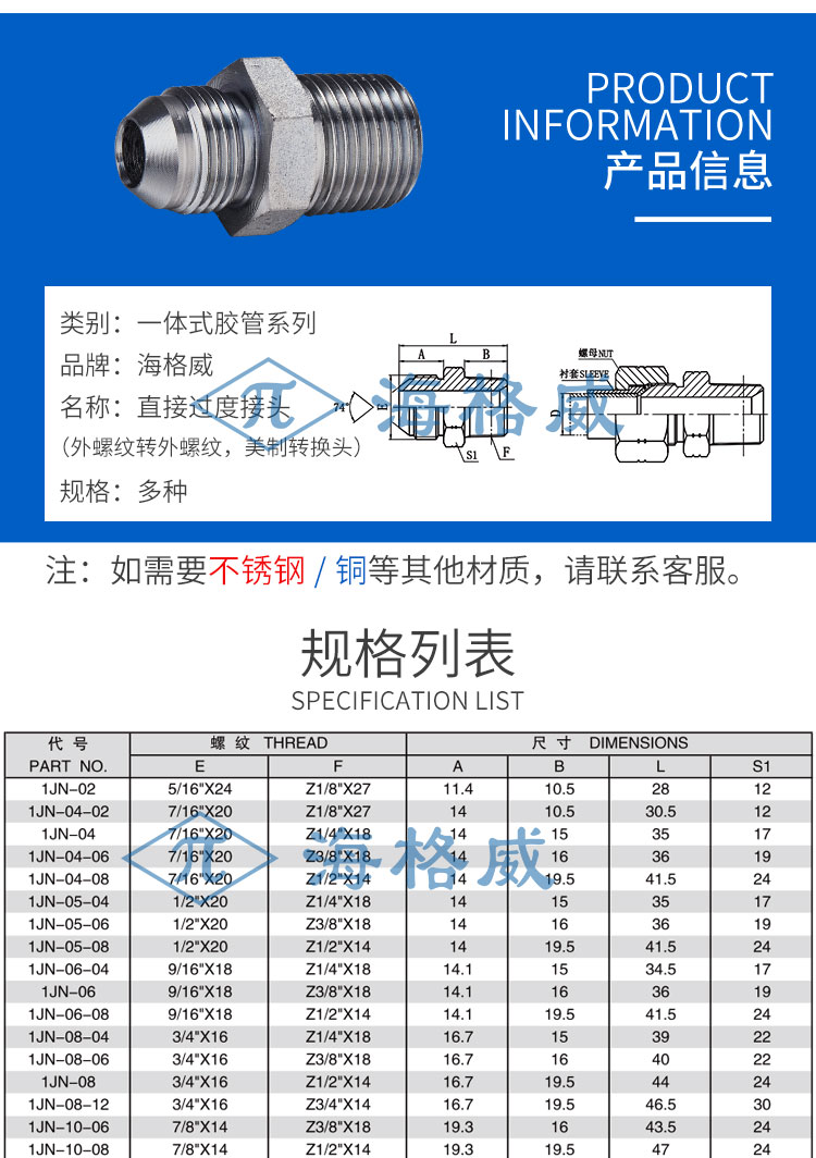 直接过度接头外螺纹转外螺纹(美制转换头)-1JN