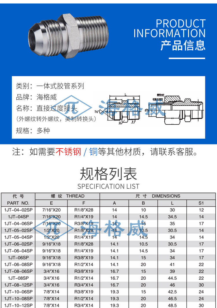 直接过度接头外螺纹转外螺纹(美制转换头)-1JT-SP