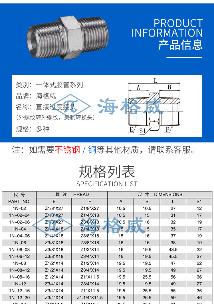 直接过度接头外螺纹转外螺纹(美制转换头)-1N