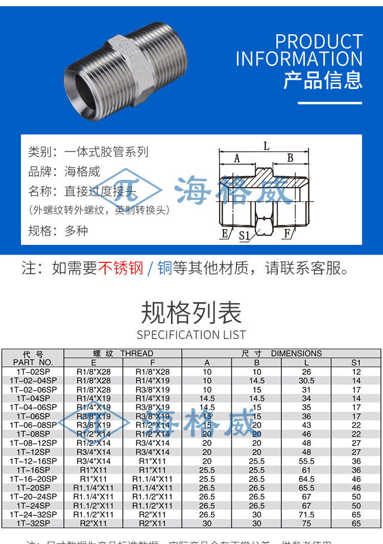 直接过度接头外螺纹转外螺纹(英制转换头)-1T-SP
