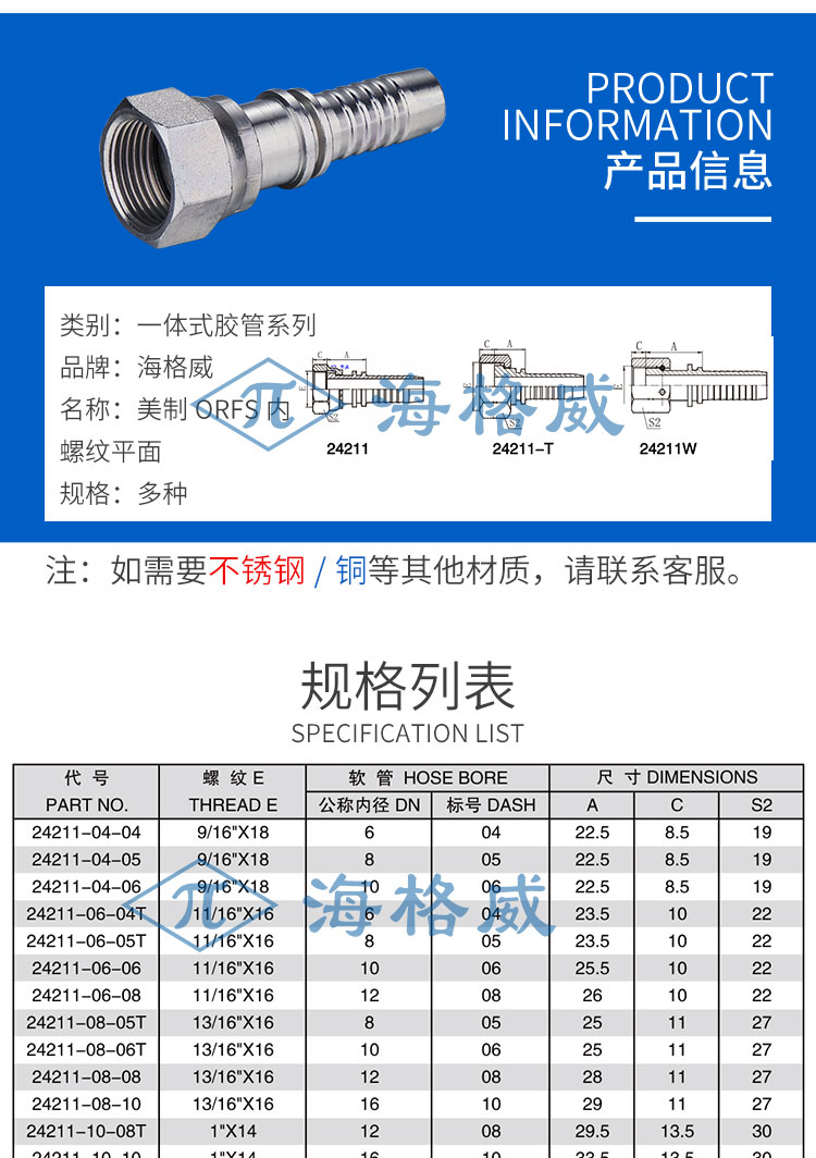 胶管接头美制ORFS-24211